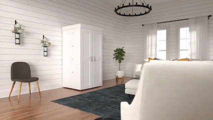 Your mobile "create room" hides-away into a beautiful armoire, saving space.